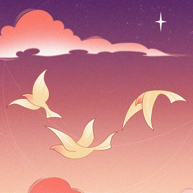 Des colombes survolent un ciel étoilé ou baigné de lumière, messagère de paix et de liberté.