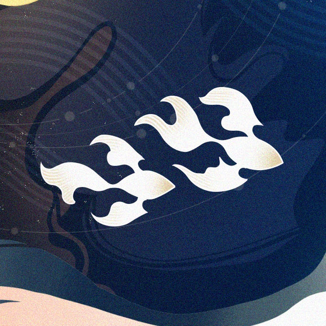 Des poissons nageant dans une mare nébuleuse, bercés par la lueur astrale.