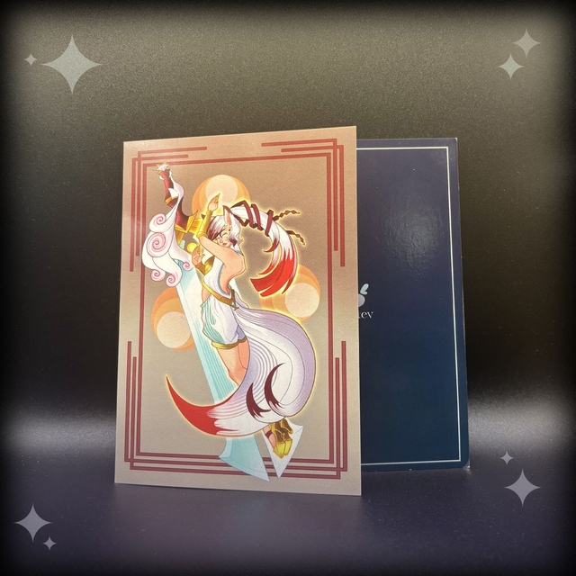 Histoire: femme renarde et gardienne du rang des Jades, veille sur la protection du Soleil des Vents avec agilité et détermination. Armée d'une imposante claymore, elle défend son rang contre toute menace qui oserait s'approcher.