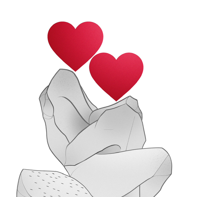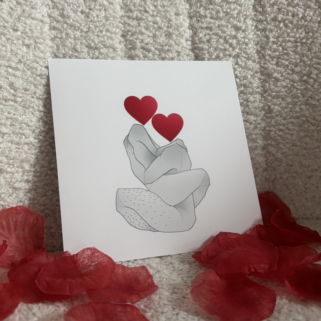Illustration ''Entre deux'' au format carré (13 x 13 cm), imprimée sur papier glossy. Cette pièce fait partie de la collection LoveU, une série de créations très complices .