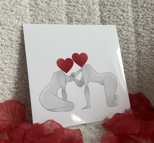Illustration ''Entre elles'' au format carré (13 x 13 cm), imprimée sur papier glossy. Cette pièce fait partie de la collection LoveU, une série de créations très complices .